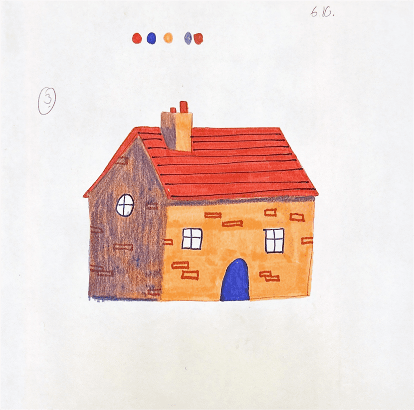Mit Bunt- und Acrylstiften ist hier ein kleines Haus entstanden- voller Anregungen und mit viel potenzial, um die eigene Traumversion zu gestalten.